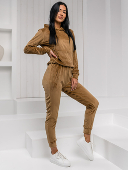 Hnědá dámská velurová tepláková souprava dvoudílná s kapucí Bolf 8C1175