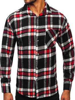 Červená pánská kostkovaná flanelová košile s dlouhým rukávem Bolf 2025-1
