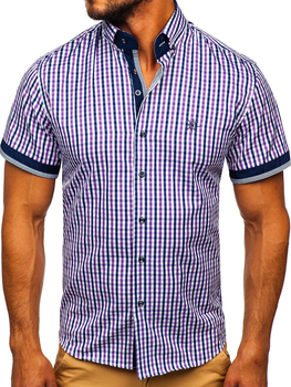 Fialová pánská kostkovaná košile s krátkým rukávem Bolf 4510