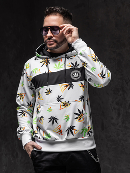 Bílá pánská mikina s kapucí a flitry Bolf HM566
